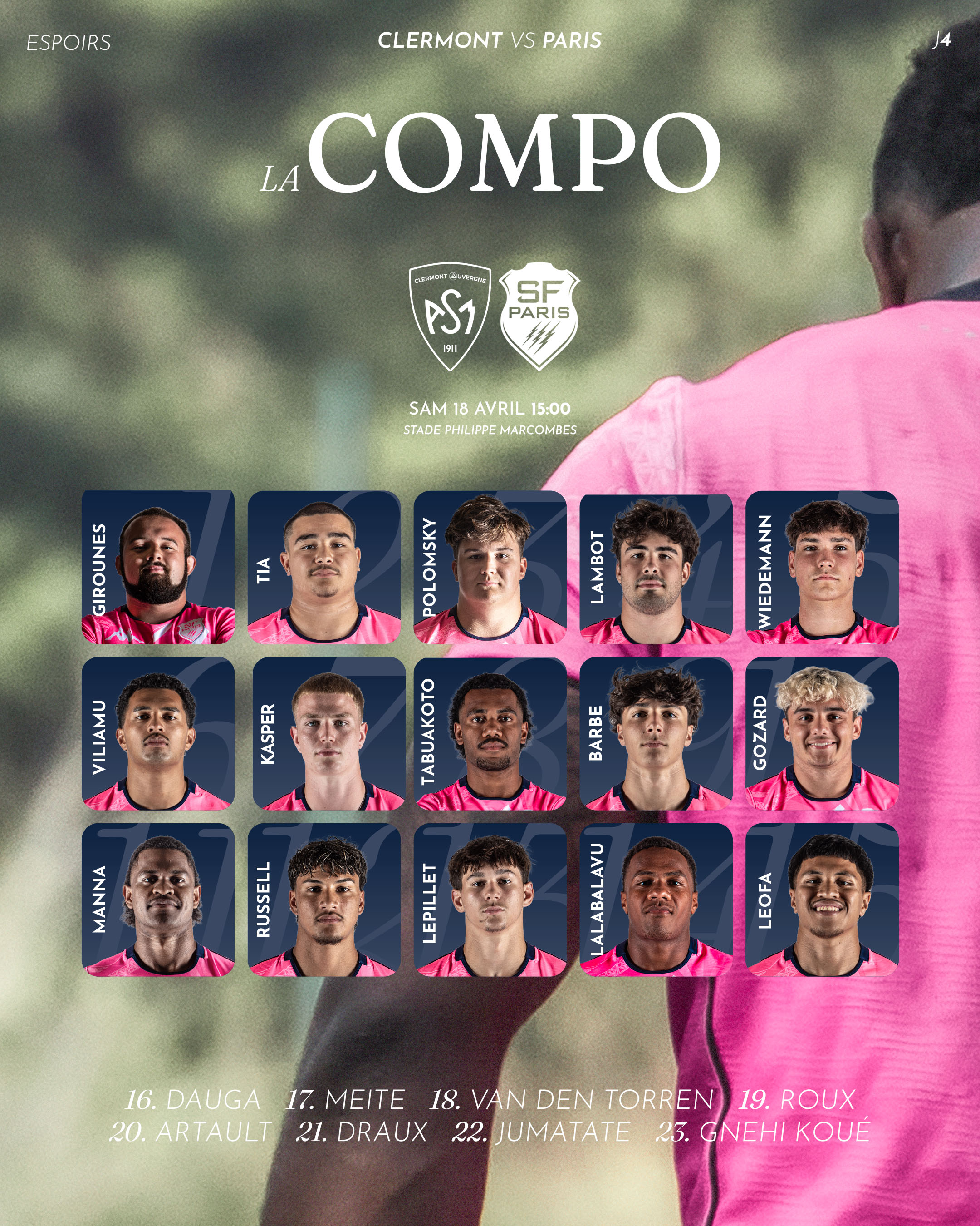 Découvrez les 23 Espoirs alignés pour la quatrième journée de phase qualificative face à Clermont.
