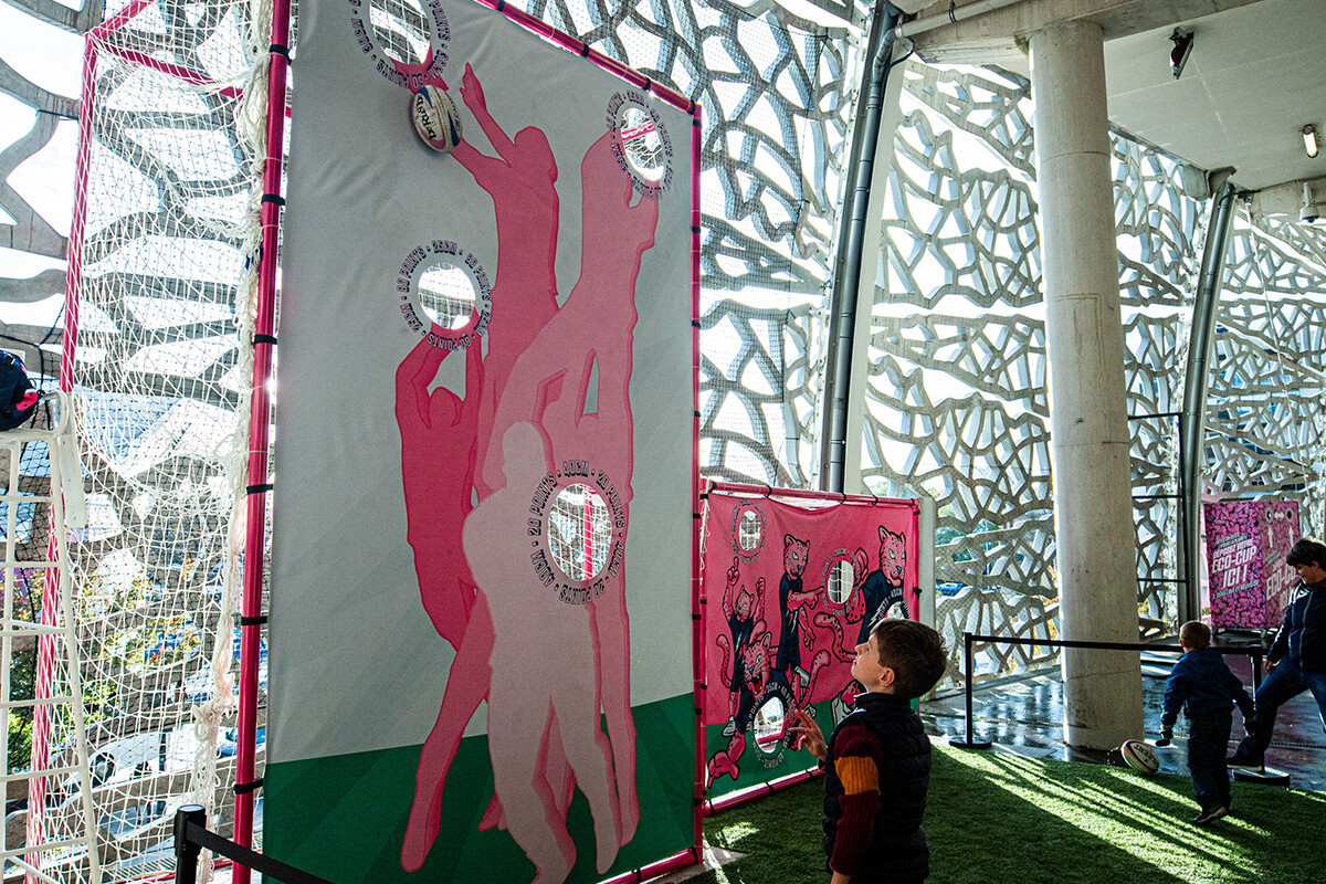Lancers en touches, passes : venez parfaire votre technique avec notre animation rugby dans les coursives de la tribune Parc des Princes !