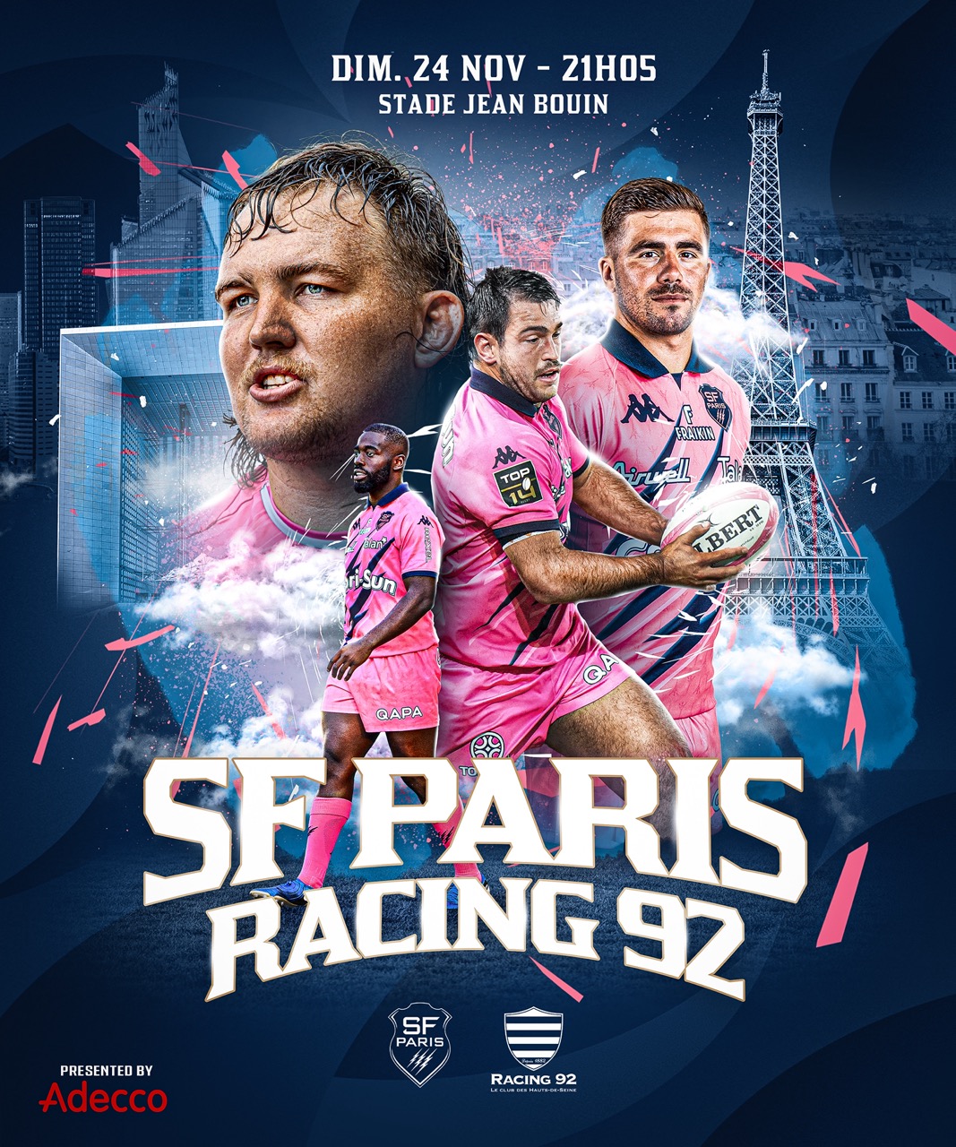 Ce dimanche, le Racing 92 débarque à Jean Bouin pour un derby qui s’annonce bouillant ! Découvrez le programme qui vous attend ce dimanche à partir de 19:30 :